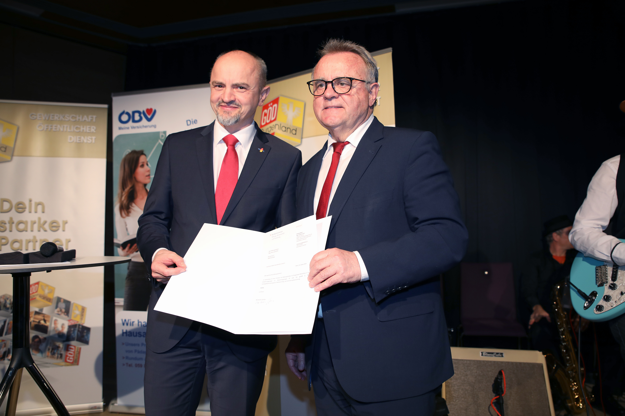Am Montag, den 18.2.2019 fand um 17:00 Uhr im Kulturzentrum Eisenstadt der traditionelle Empfang für alle SchulleiterInnen des Burgenlandes statt. Als Ehrengäste konnten LH Hans Niessl und die designierte Bildungslandesrätin Daniela Winkler begrüßt werden. Die zahlreich erschienenen SchuleiterInnen verabschiedeten LH Niessl mit Standing ovations. Herzlich willkommen geheißen wurde die neue Bildungslandesrätin, die sich beim anschließenden Buffet sichtlich gut unterhielt. Im Rahmen des Empfanges überreichte LH Hans Niessl als eine seiner letzten Amtshandlungen im Bildungsbereich die Urkunde zur Führung des Titels Hofrat an den Bildungsdirektor Heinz Zitz. Für tolle Stimmung sorgte die Band „The Orange Blues Club“.